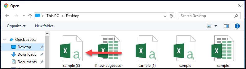 If you are using a previously created spreadsheet, click “Select File” (Screen 6), choose the desired file (Screen 7) and click “Continue.” (Screen 8)