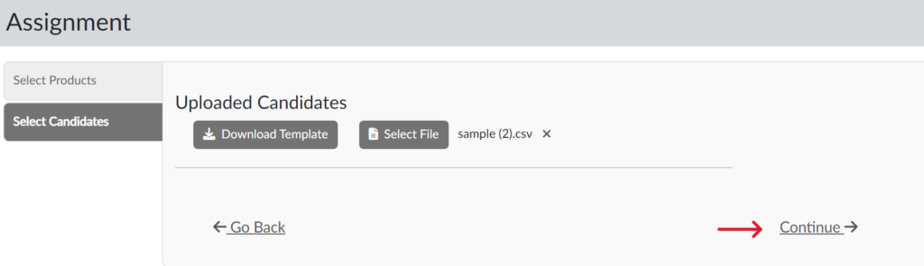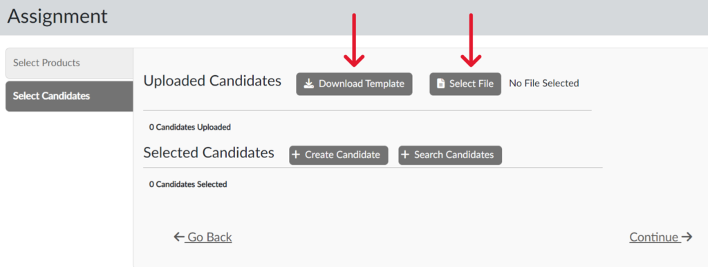 You can upload candidates in bulk either at the time of assignment of the assessment(s) or at any time in advance of assignment. Instructions for both options are provided below.