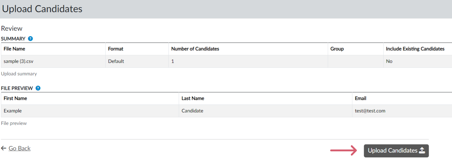 Click “Upload Candidates.” (Screen 10)