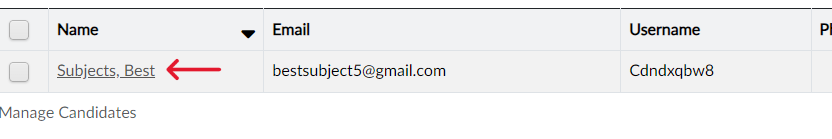 To edit a candidate’s contact or login information on your Talogy True Talent account, follow the instructions below.
