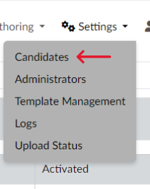 - Click “Candidates” under the “Settings” tab (3 wheels). (Screen 1)
