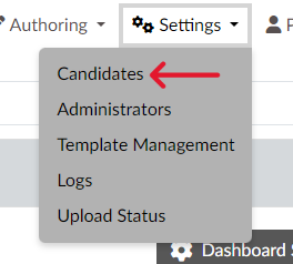 Under the “Settings” tab (3 wheels icon), click “Candidates.” (Screen 1)