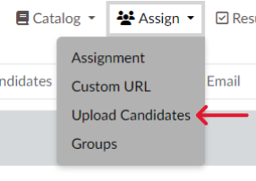 Click “Upload Candidates” under the “Assign” tab. (Screen 1)