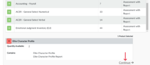 Select the assessment or workflow to be assigned by clicking the plus sign (“+”) in the “Add” column.