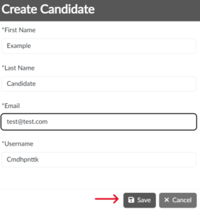 Next, create accounts for the people (candidates) who will take the assessment(s) by clicking “Create Candidate.”