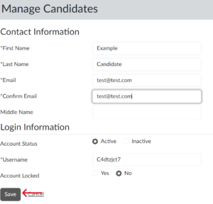 Fill out the required information, and click “Save.” You have now created a candidate in the system. (Screen 3)