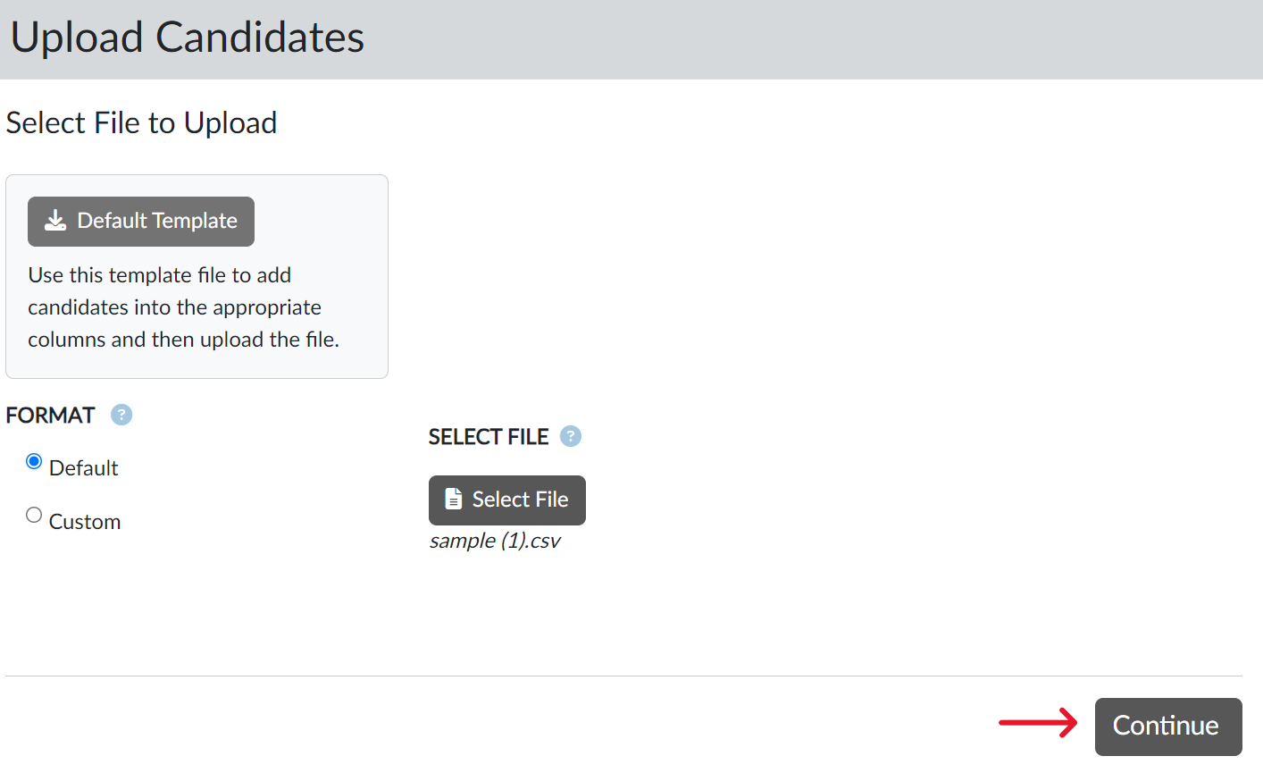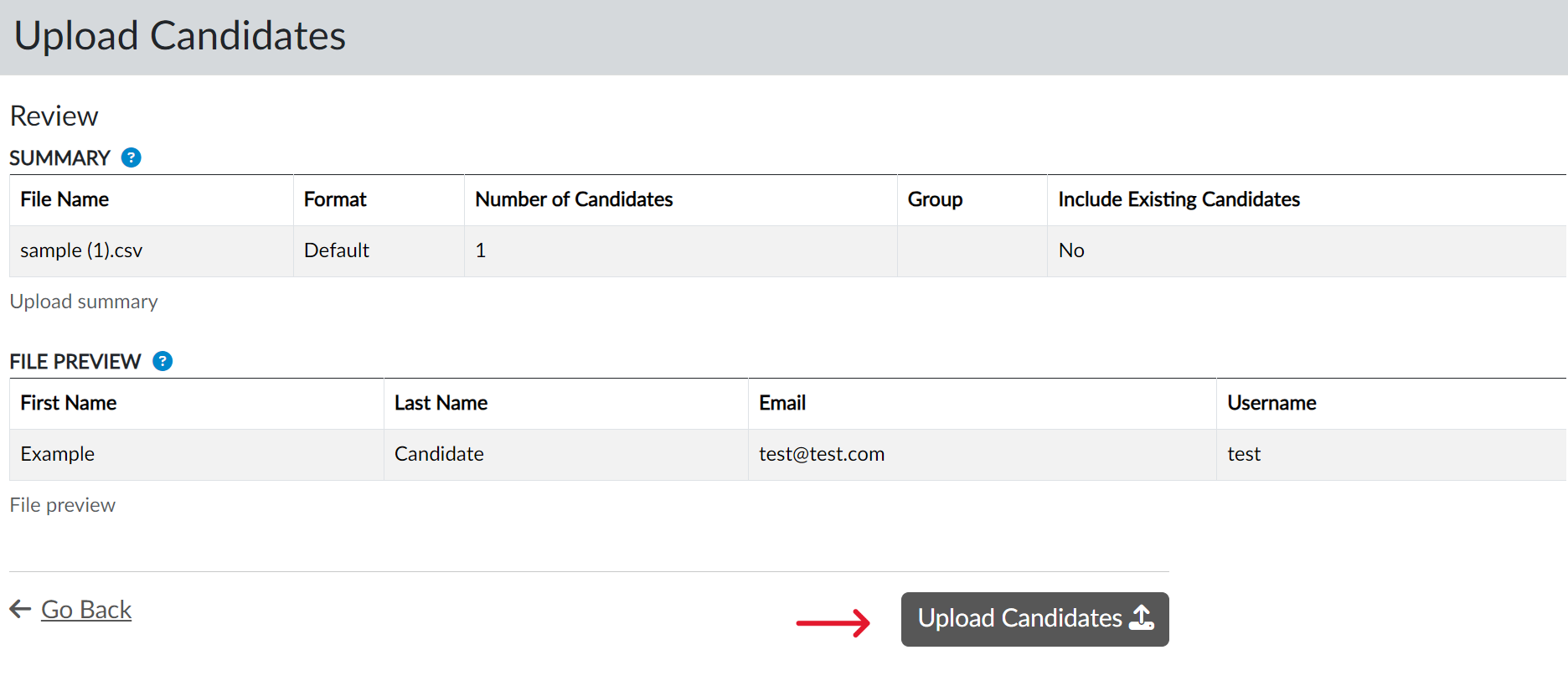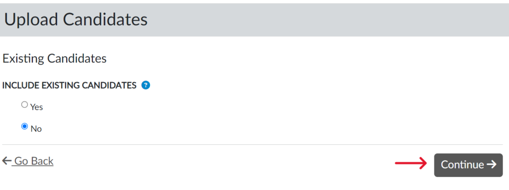 OPTION: To upload candidates in bulk during assignment, click “Upload Candidates” instead of “Create Candidate.” See detailed instructions here.